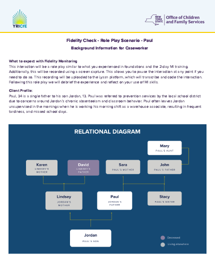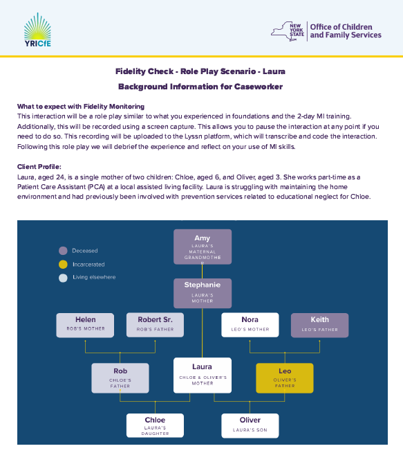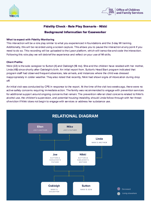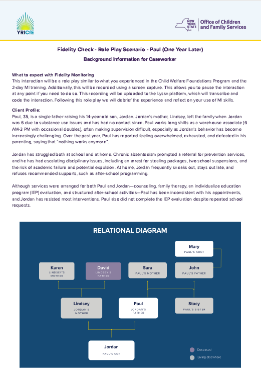 The roleplay scenarios have been developed as part of ongoing Fidelity Check monitoring to support the best practice of implementing Motivational Interviewing as a natural part of your casework interactions.